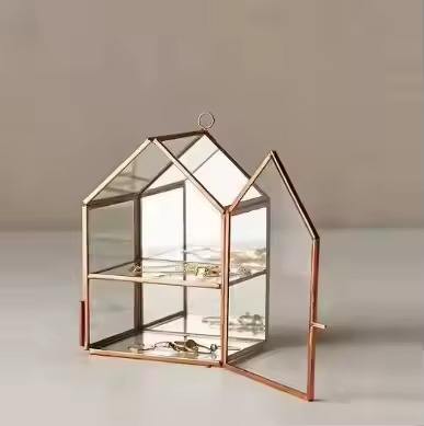 กล่องใส่เครื่องประดับโลหะและแก้ว คุณภาพดีไซน์หรู โครงโลหะสีทอง ของขวัญแต่งงาน กล่องโชว์เครื่องประดับ