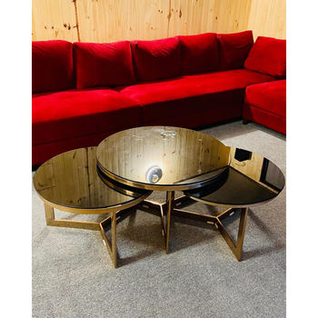 โต๊ะกาแฟโลหะและหินอ่อนทรงกลมขนาดใหญ่โต๊ะเฟอร์นิเจอร์ห้องนอนโลหะชุบทองเฟอร์นิเจอร์บ้าน