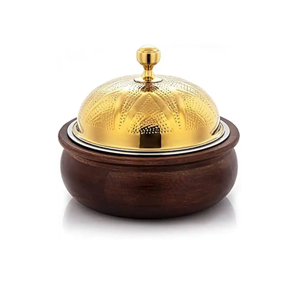 หม้อโลหะและไม้พร้อมฝาปิดทํางานแบบตอกคลาสสิกโรงแรมหม้อไฟและการตกแต่งโต๊ะเป็นกลุ่ม