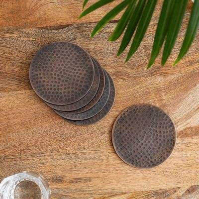 ถาดรองแก้วโลหะที่มีลวดลายตัดที่ซับซ้อนเพิ่มสัมผัสศิลปะแบบชาวพื้นเมืองให้กับห้องครัวบาร์รับประทานอาหารที่จัดแสดงในงานนำเสนอ