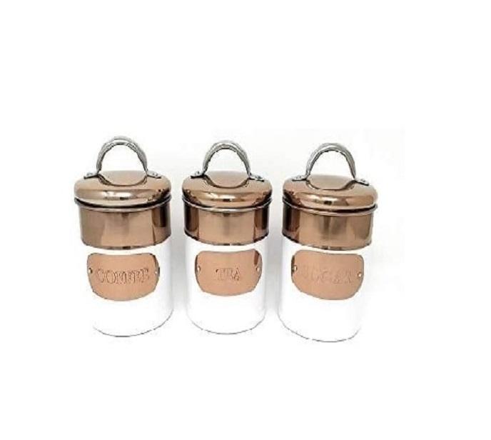 ชุดภาชนะเก็บอาหารทำจากทองแดงโลหะ3ชิ้น1-3L ใส่เครื่องปรุงอาหารชามน้ำตาล