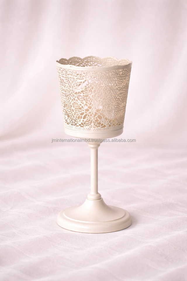 เชิงเทียนโลหะลายฉลุพร้อมขาตั้งยาว – ชุด 4 ชิ้น (สีดำ สีขาว สีพิวเตอร์ และสีทองโบราณ)