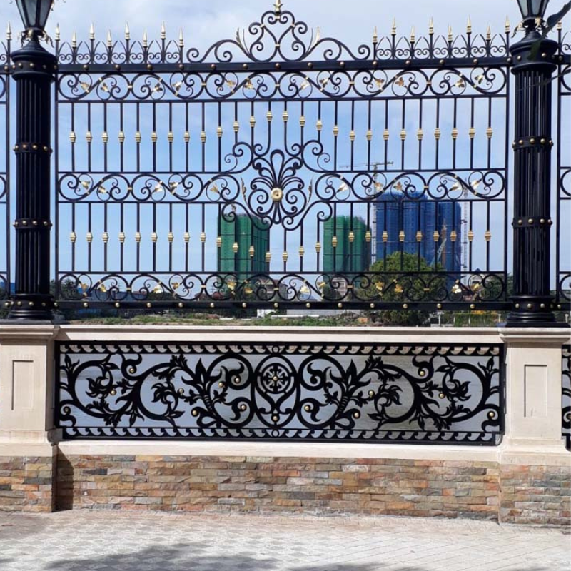 รั้วโลหะสำหรับฟาร์มและบ้านที่ทำในเวียดนามรั้วความเป็นส่วนตัวกลางแจ้งที่แข็งแกร่งจากส่วนผสม100เปอร์เซ็นต์ของเวียดนาม