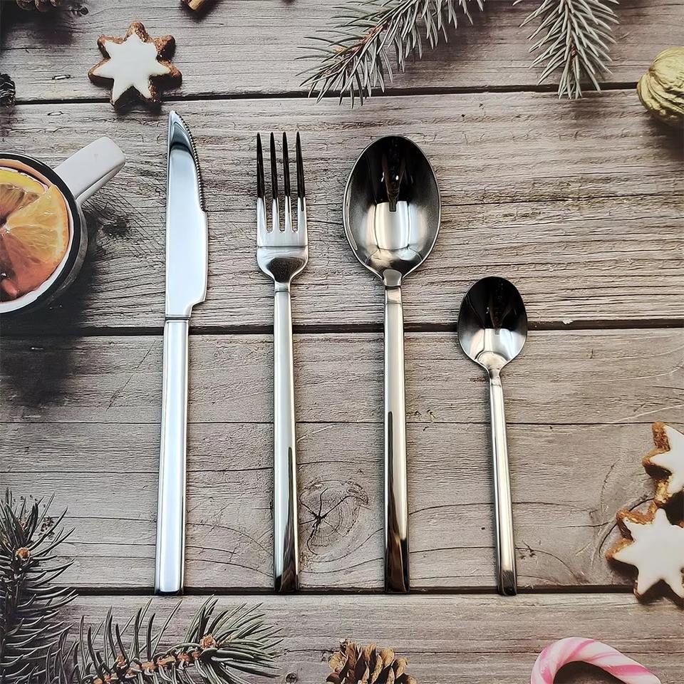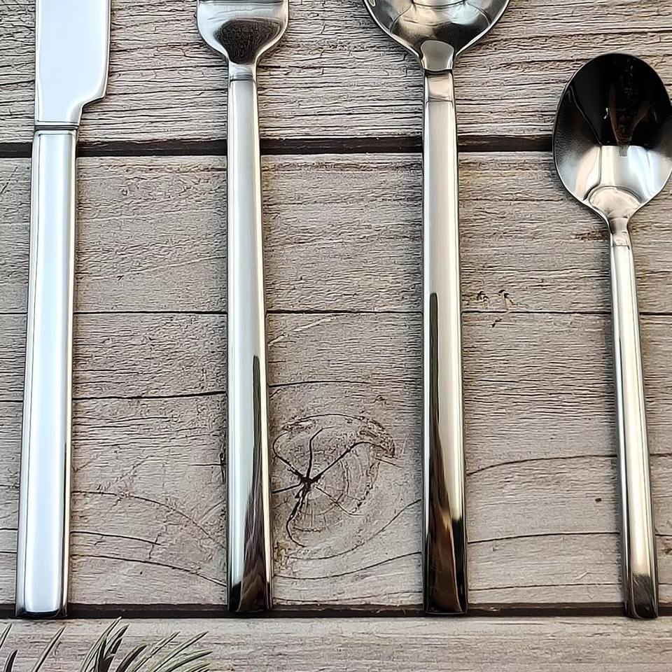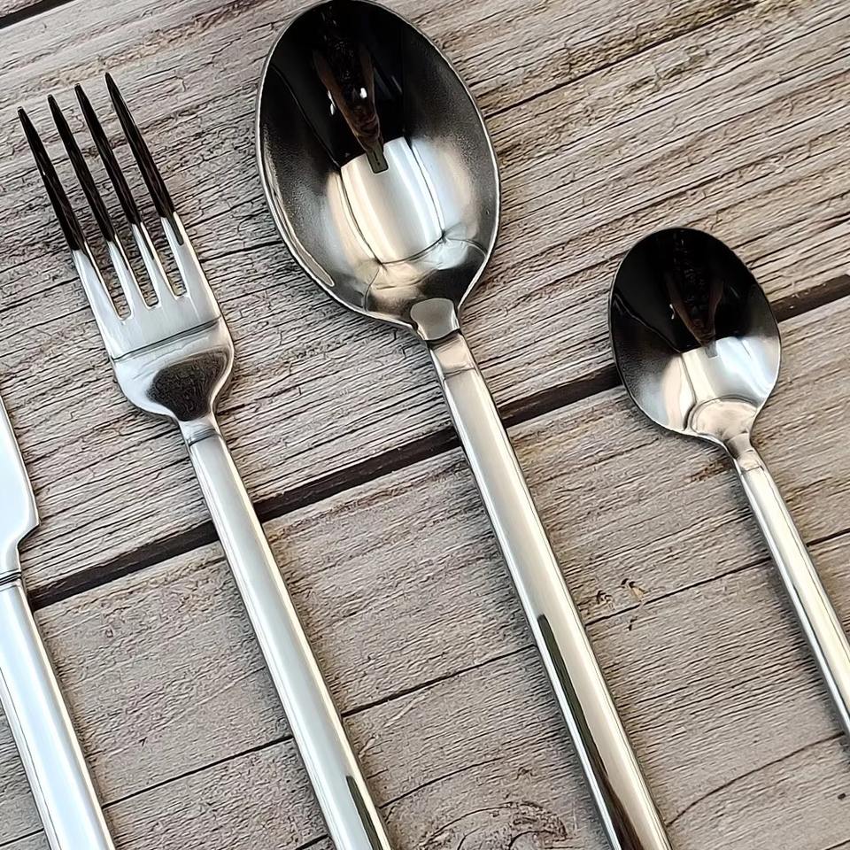 ชุดช้อนส้อมโลหะแบบแบน ดีไซน์โดดเด่น สวยงาม พร้อมการขัดเงาที่น่าทึ่ง ผลิตจากสแตนเลสคุณภาพสูง