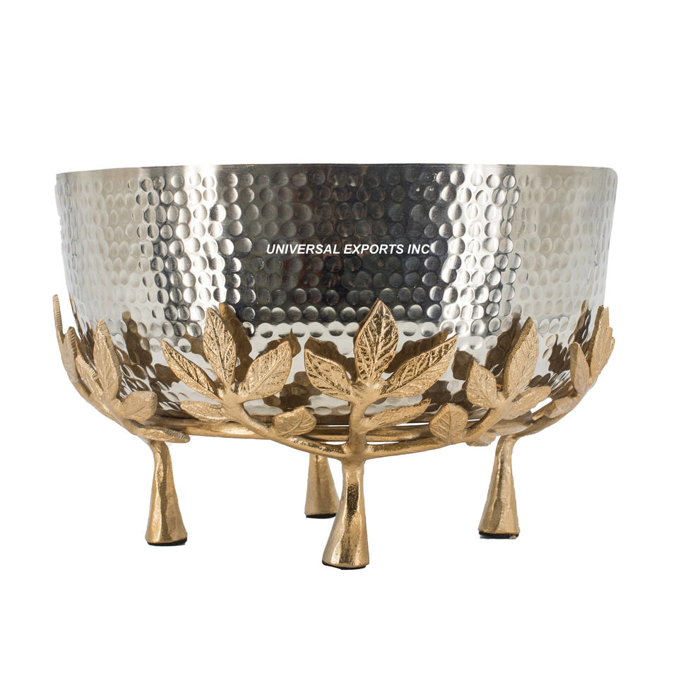 ชามช็อคโกแลตโลหะตอกด้วยขาตั้งสีทองทรงกลมดีไซน์เนอร์ทำด้วยมือชามช็อคโกแลตแบบใหม่