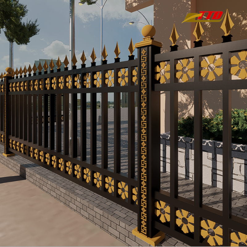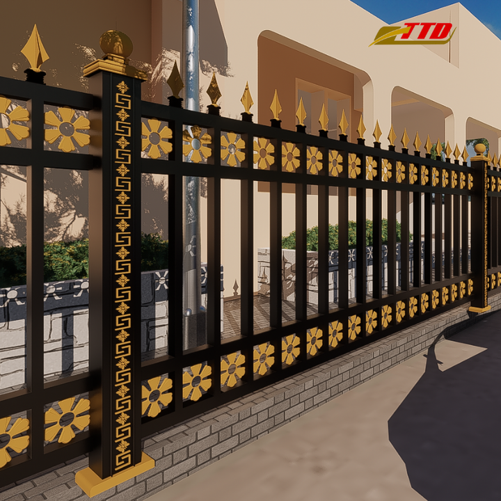 รั้วเหล็กโลหะออกแบบในเวียดนามสภาพอากาศแข็งแรงทนทานสำหรับสวนวิลล่าร้อยละ100ผลิตในเวียดนาม