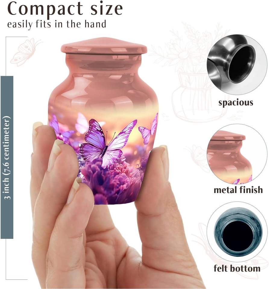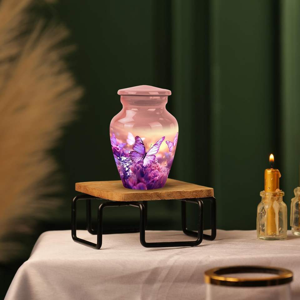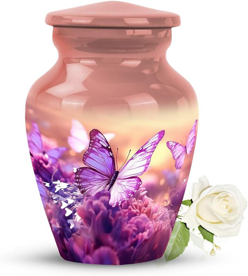 โกศขนาดเล็กลายผีเสื้อสำหรับผู้ใหญ่ชายและหญิงขี้เถ้าสำหรับผู้ใหญ่ดีไซน์ใหม่ทำจากโลหะ