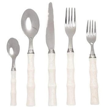 ชุดเครื่องเงินโลหะพร้อมที่จับกระดูกประกอบด้วยช้อนส้อมและมีดเนยเหมาะสำหรับร้านอาหารในราคาถูก