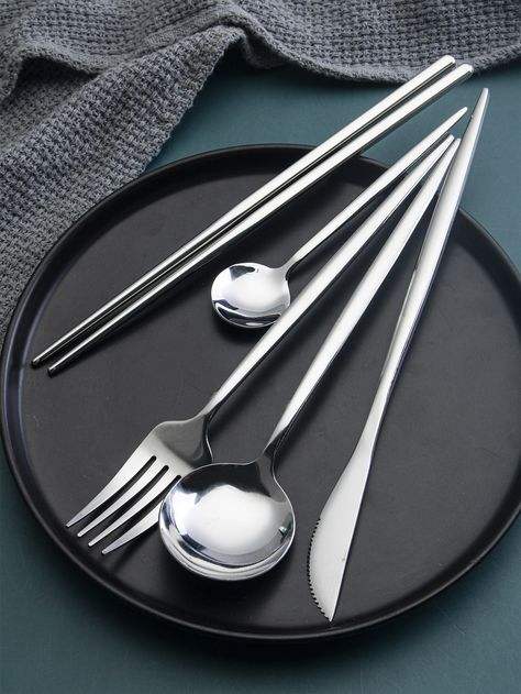 ชุดช้อนส้อมสแตนเลสโลหะสำหรับร้านอาหารแบนและชุดโรงแรม7ชิ้นพร้อมมีดและส้อมและช้อน