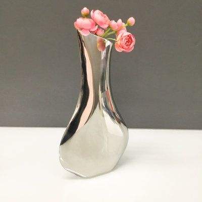แจกันโลหะที่ทันสมัยเคลือบด้วยความโปร่งใสสำหรับการตกแต่งภายในที่หรูหราการออกแบบที่เป็นตัวหนาและไร้กาลเวลา