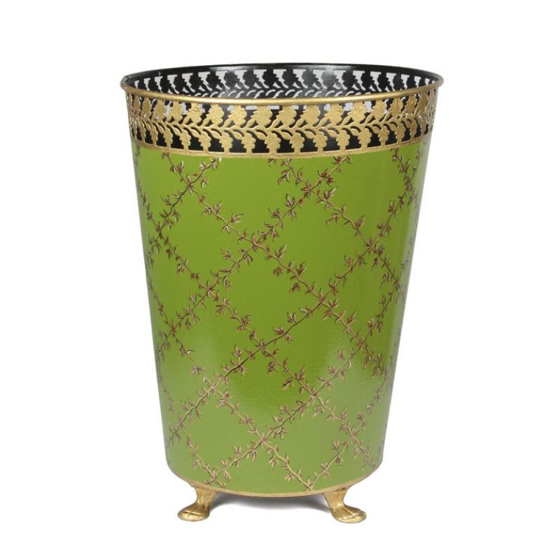 ถังขยะโลหะที่มีการพิมพ์ดิจิตอลที่สวยงามด้วยเท้าทองเหลือง