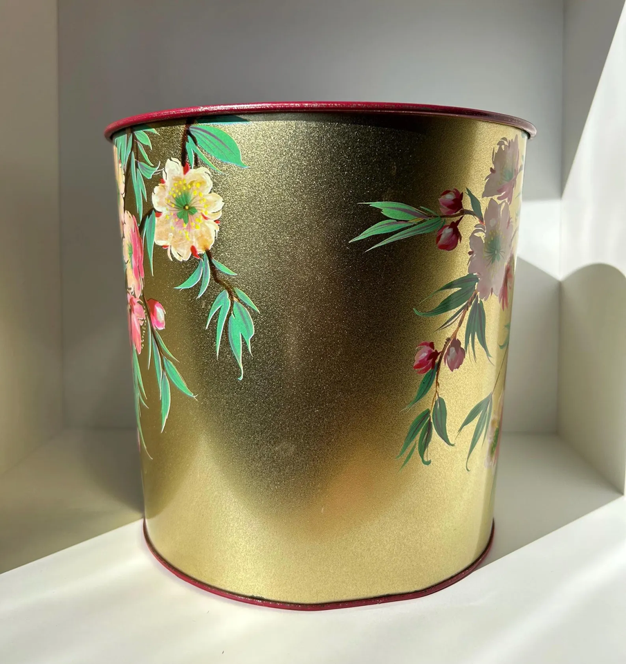 ถังขยะโลหะที่มีการพิมพ์ดิจิตอลที่สวยงามด้วยเท้าทองเหลือง