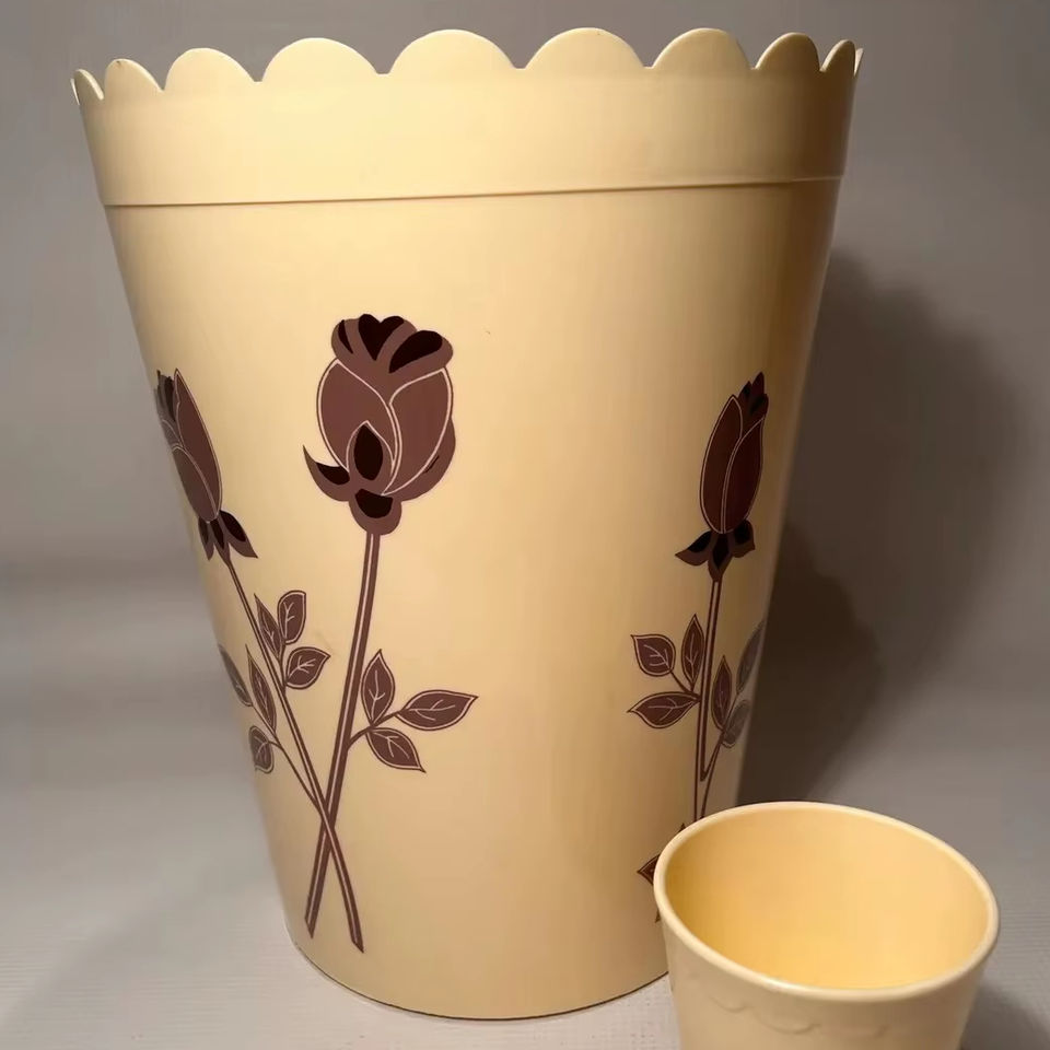 ถังขยะโลหะที่มีการพิมพ์ดิจิตอลที่สวยงามด้วยเท้าทองเหลือง