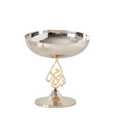 ชามใส่ผลไม้และของว่างทรงกลมทำจากสแตนเลสสตีลเคลือบเงิน งานแฮนด์เมด ฐานโลหะ