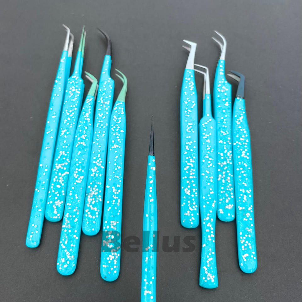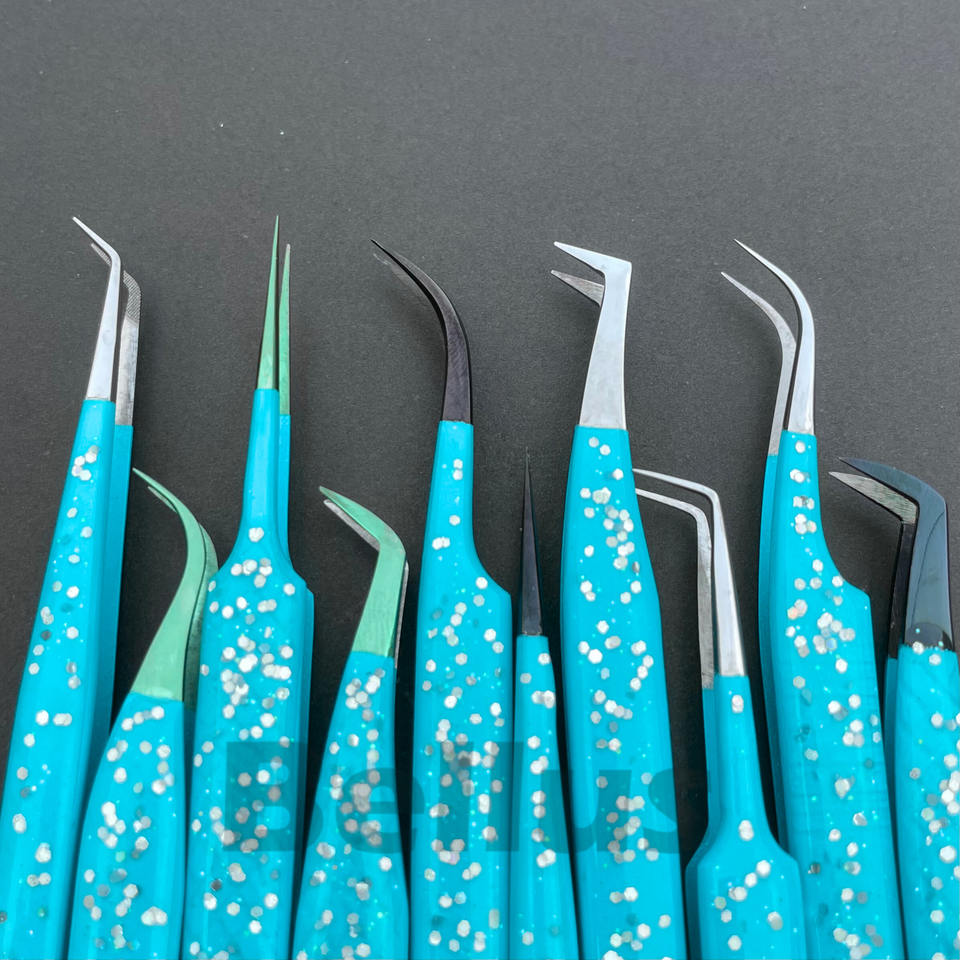 Metallic Blue Volume Eyelash Tweezers Premium Japanese Steel Custom Logo Pointed Tip Lash Extension Tool Sustainable Precision