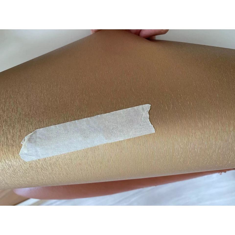 แผ่นฟิล์มพีวีซีเคลือบสีโลหะแผ่นฟิล์มไวนิลไวนิลติดด้วยตนเองสีทองสำหรับเฟอร์นิเจอร์