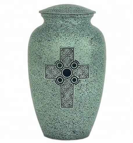 โกศเผาศพโลหะและของที่ระลึกการออกแบบแบบดั้งเดิมแกะสลักข้ามเงินผู้ใหญ่งานศพที่ระลึกเถ้าโกศสําหรับขาย