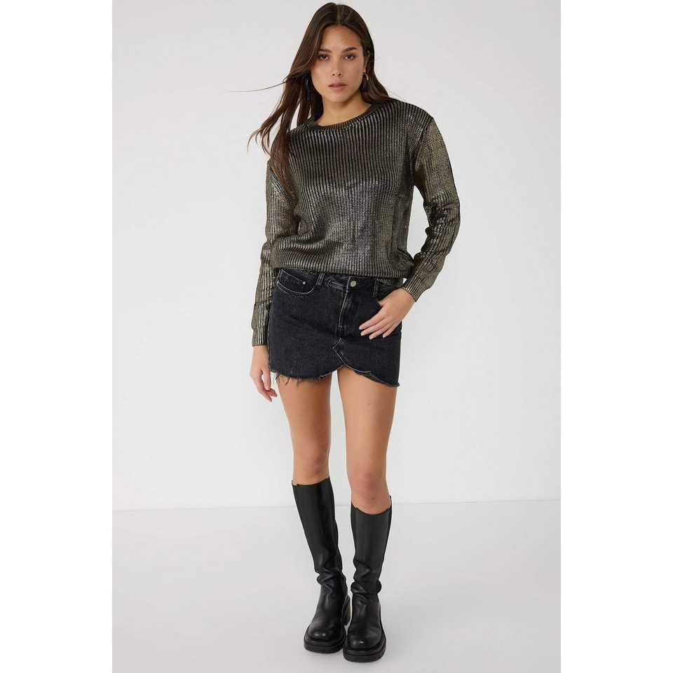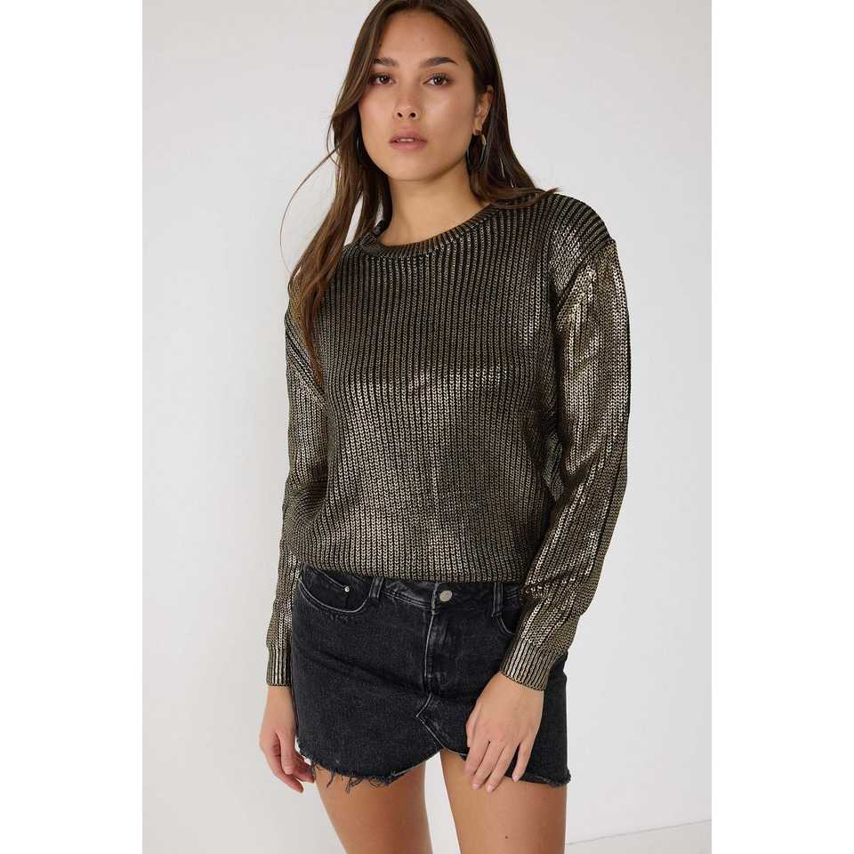 เสื้อสเวตเตอร์ถักทรงหลวมแต่งรายละเอียดเมทัลลิก