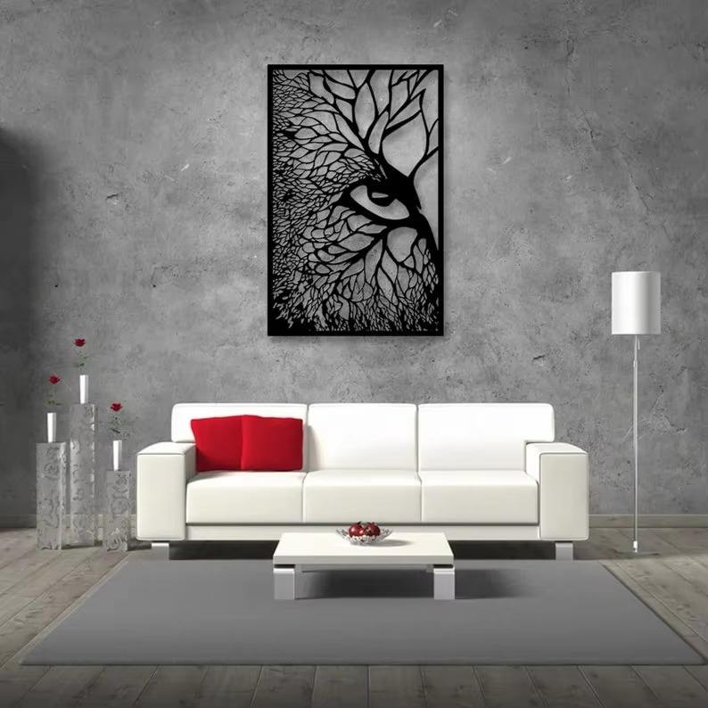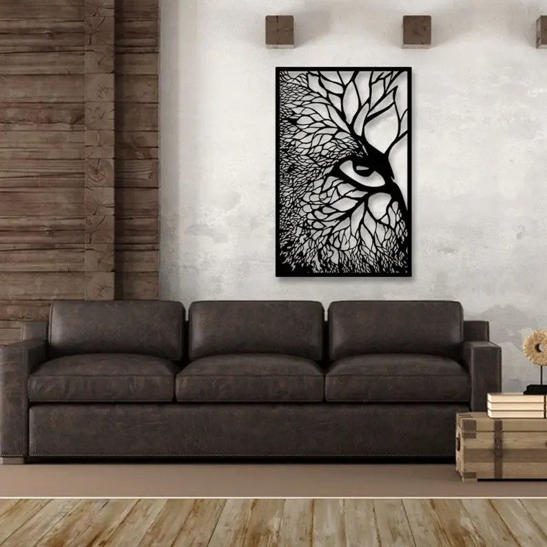 ตกแต่งพื้นที่โลหะแบบมีสไตล์ในราคาขายส่งและทันสมัยอาร์ตเดคโคศิลปะผนังด้วยภาพต้นไม้ที่ดูสะดุดตา