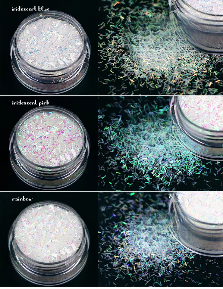 กลิตเตอร์เส้นใยโพลีเอสเตอร์สีเขียวโฮโลแกรมเมทัลลิก ปลอดสารพิษ สำหรับขวดเชคเกอร์ แก้วน้ำ DIY ตกแต่งเล็บพลาสติก 1 ชิ้น