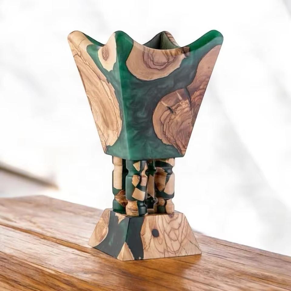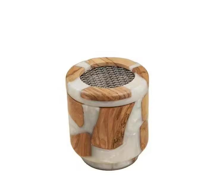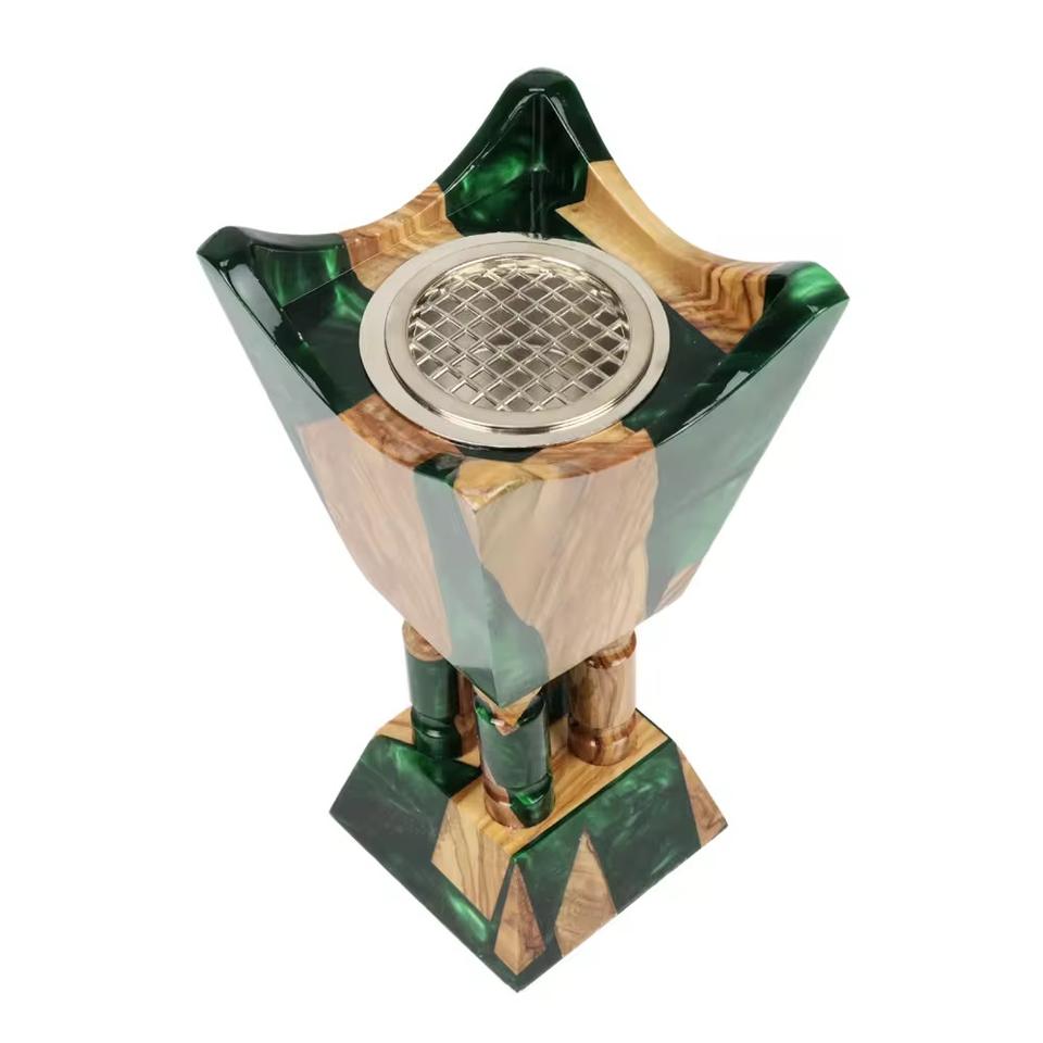 เตาเผาบัคฮูร์เรซิ่นสีส้มเมทัลลิก คุณภาพสูง ทันสมัย สวยงาม เป็นมิตรกับสิ่งแวดล้อม ทำด้วยมือ พร้อมฐานไม้