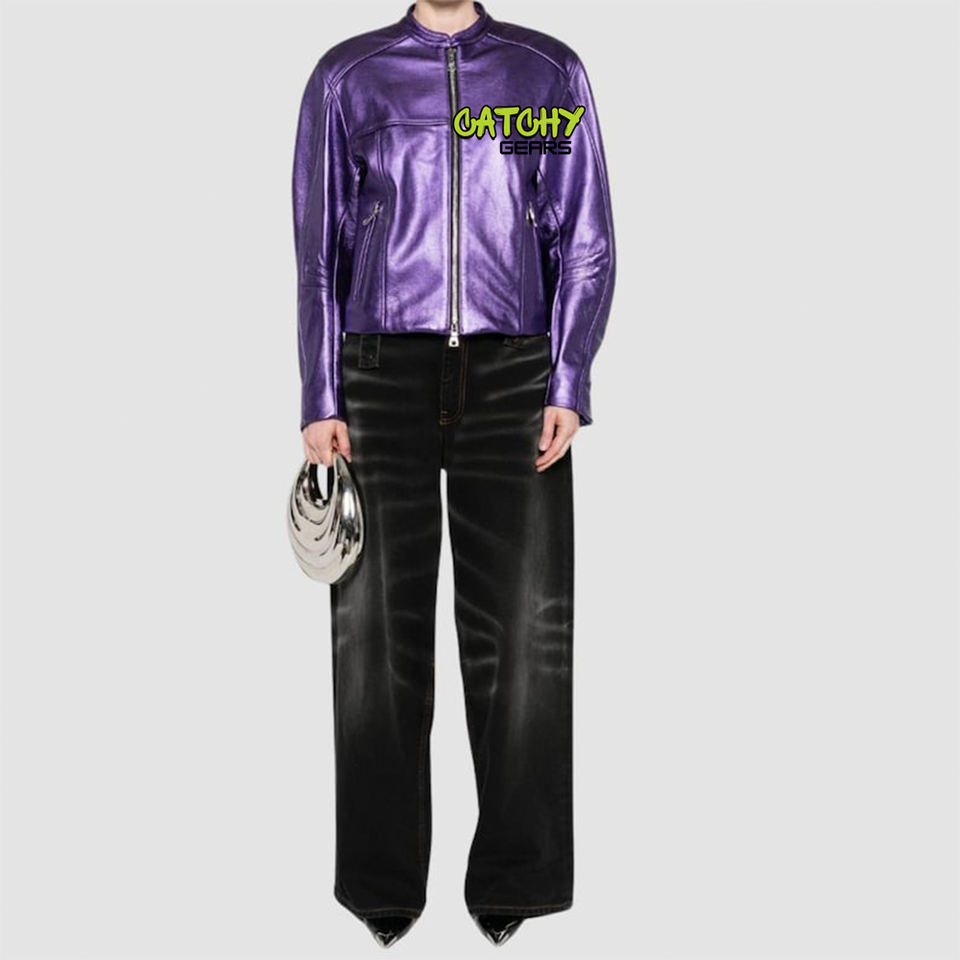 เสื้อโค้ทเทรนช์โค้ทผู้หญิงสีเมทัลลิกแวววาวแจ็กเก็ตกีฬากลางแจ้งเสื้อโค้ทสำหรับผู้หญิง
