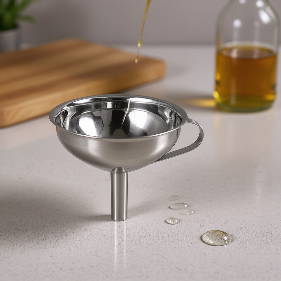 Metaltex Bottle Funnel Stainless Steel With Handle For Pouring Liquids