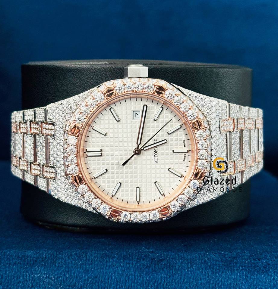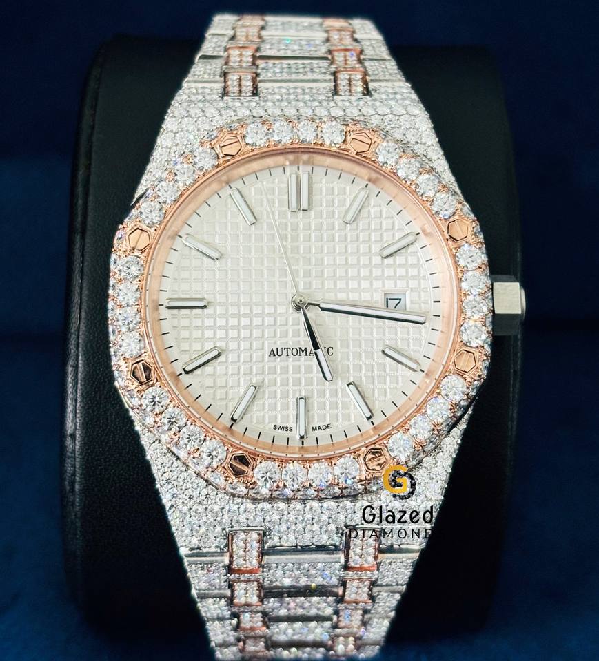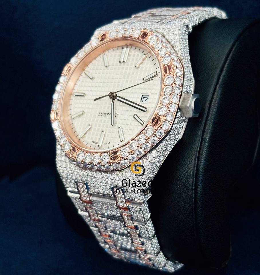 นาฬิกาข้อมืออัจฉริยะประดับเพชรเพชร missanite ประดับด้วยความพิถีพิถันตัดขอบสแตนเลสสไตล์ฮิปฮอป41มม. แนวสปอร์ต