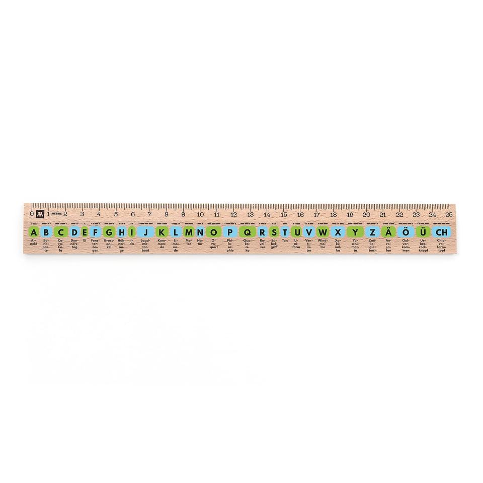 ไม้บรรทัดไม้เมทรี 25 ซม. พร้อมตัวอักษรและรหัสมอร์สสำหรับการศึกษา