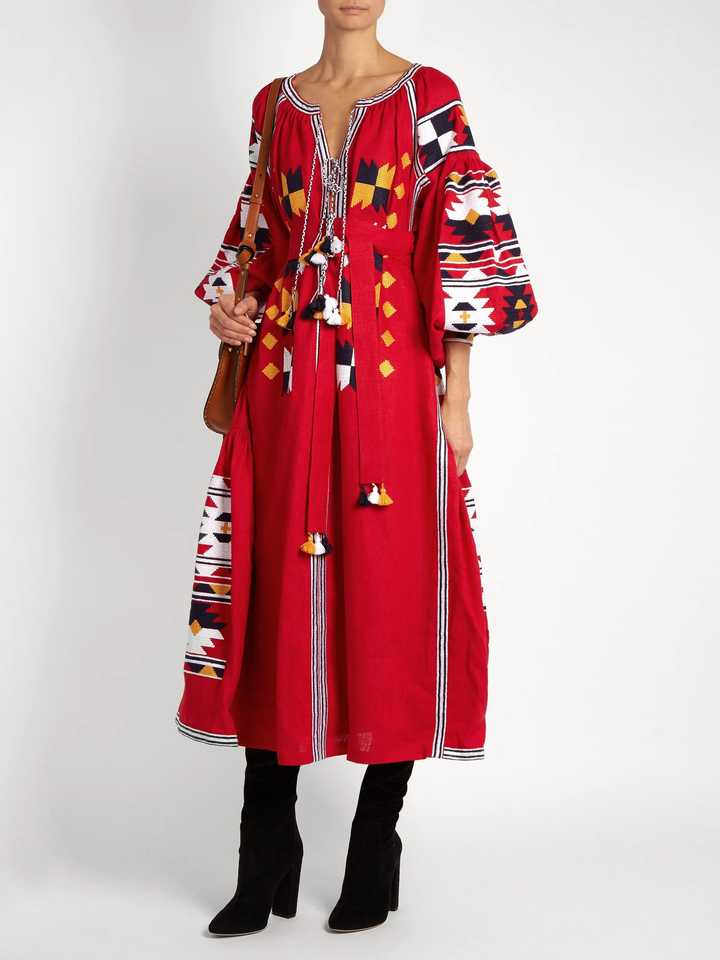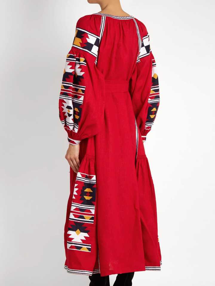 ชุดราตรีปักสไตล์โบฮีเมียนเม็กซิกันแขนยาวสีแดงดีไซน์ที่ดีที่สุดสำหรับงานรีสอร์ทงานลำลองซักได้