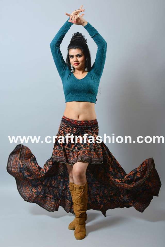 Mexican Dance Wear Ibiza Skirt - Summer Fashion Short Skirt - Indo Western Style-Designer Silk Poly Crepe Skirt- Beach Wear