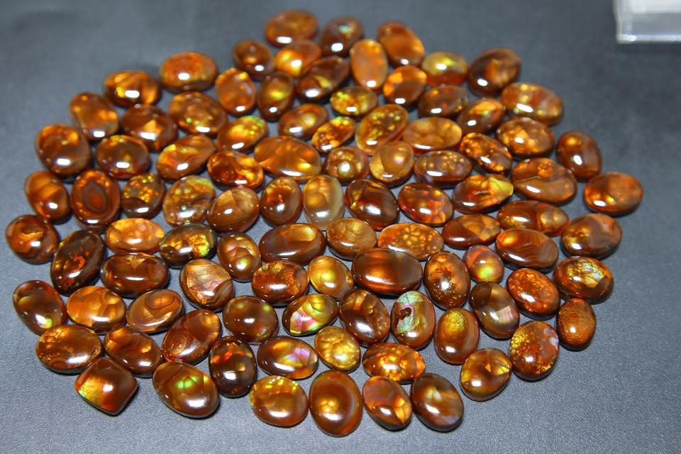 พลอยอะเกตไฟเม็กซิกันอัญมณีทรงโค้งเรียบอัญมณีรูปวงรีไฟโมราธรรมชาติทรงหลังเบี้ยทำเครื่องประดับทำให้มีทุกขนาด