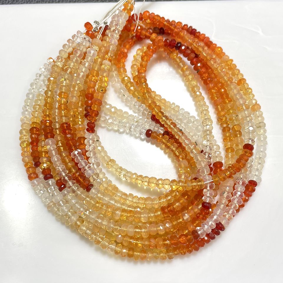 ลูกปัดโอปอลไฟเม็กซิโกทรงรอนเดลเหลี่ยมเพชรพลอย สีส้ม ขายส่ง คุณภาพดี ธรรมชาติ ขนาด 3.5-4 มม.