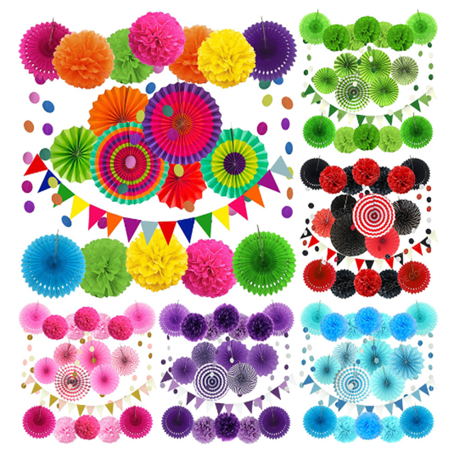 พัดกระดาษแขวนหลายขนาดสำหรับตกแต่งงานปาร์ตี้