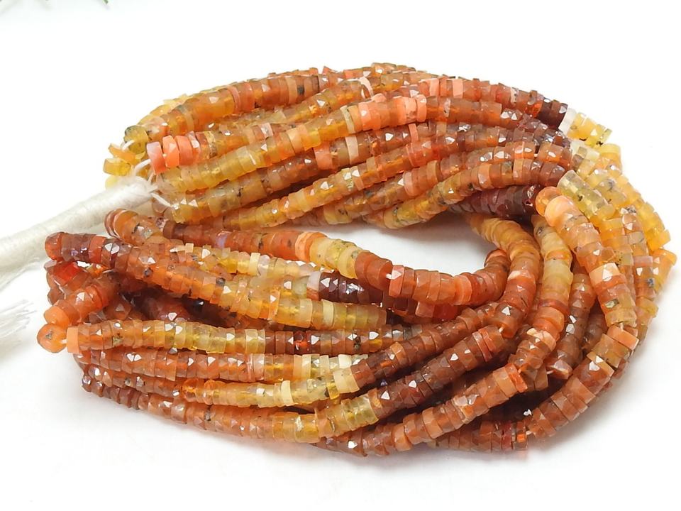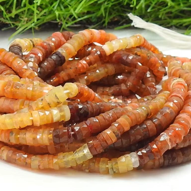 ลูกปัดโอปอลเม็กซิกันสีส้มทรงกระดุม ขัดเงา ขนาด 16 นิ้ว ประมาณ 4-5 มม. หินธรรมชาติสำหรับทำเครื่องประดับ