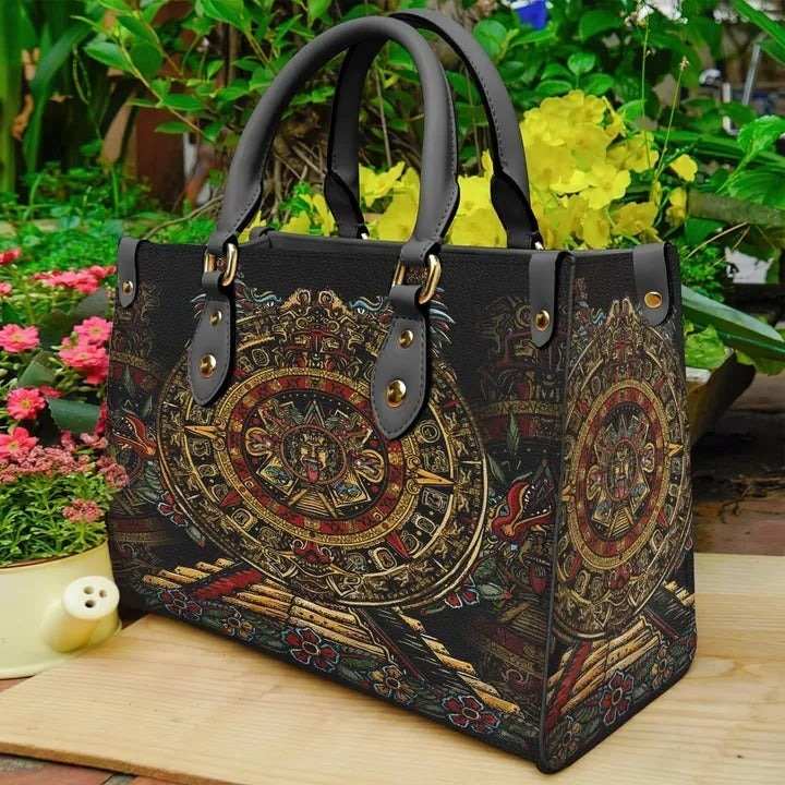 กระเป๋าถือหนัง PU ลายพระอาทิตย์จากเม็กซิโกแอซเท็กสำหรับผู้หญิงกระเป๋าโท้ทผู้หญิงหรูหรา