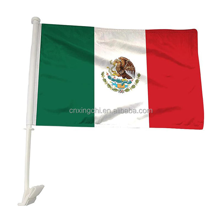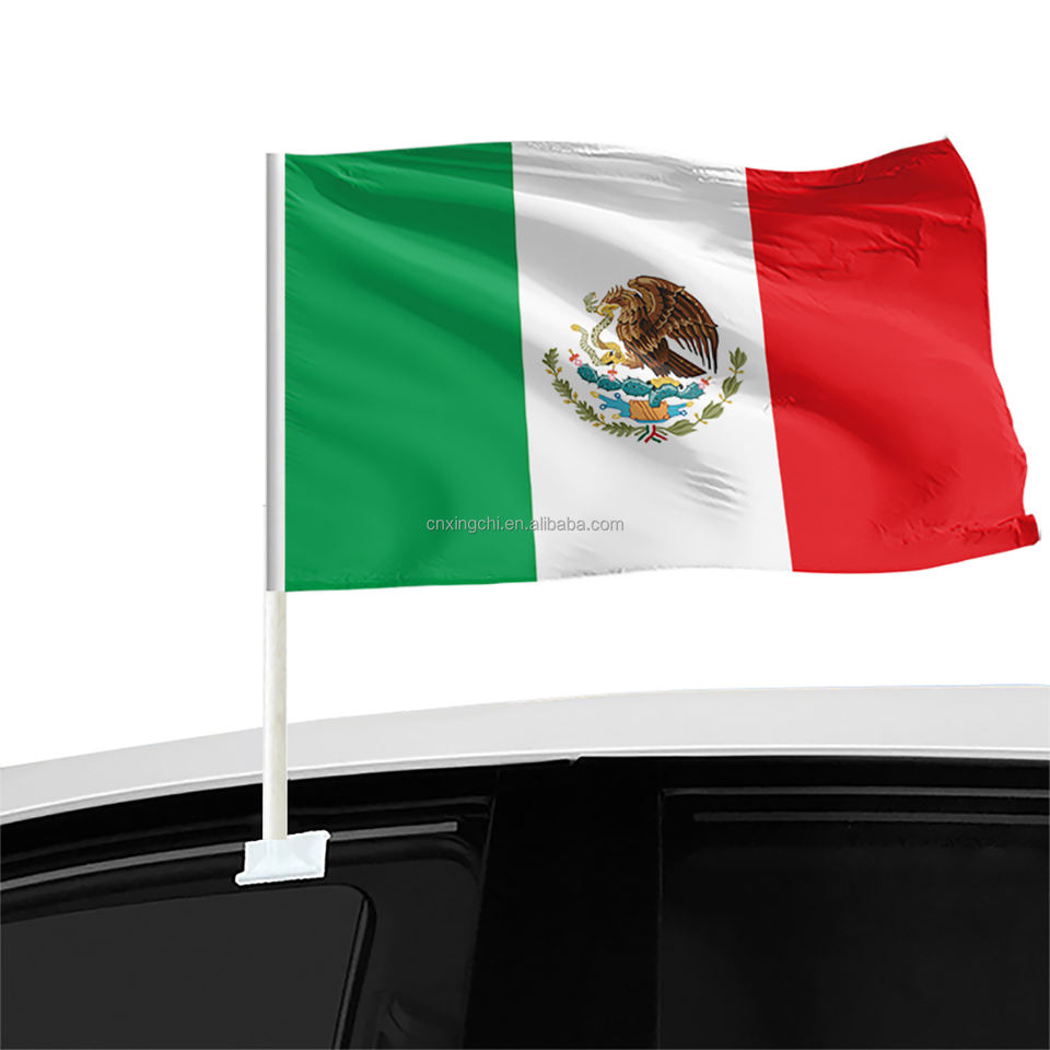 ธงเม็กซิโก โพลีเอสเตอร์ 100% พิมพ์ลายดิจิทัล กันน้ำ เป็นมิตรกับสิ่งแวดล้อม แห้งเร็ว พร้อมเสาธงไฟเบอร์กลาส ขนาด 14x21 ซม.