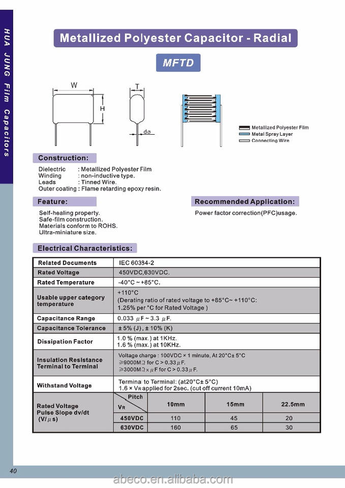 Mftd 683j High Quality 630V 0.22K Metallized Polyester Capacitor