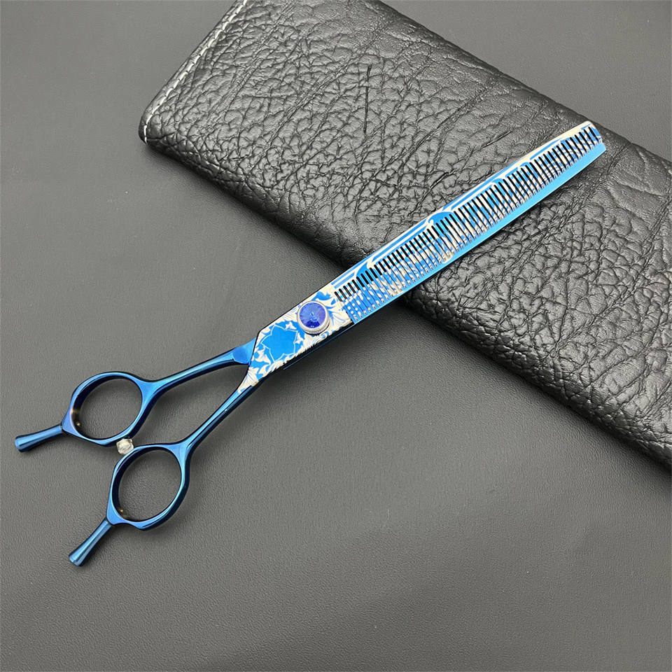 กรรไกรตัดขนสัตว์เลี้ยง Mi Pet Grooming ขนาด 7.5 นิ้ว ทำจากสแตนเลส สำหรับตัดขนสุนัข แบบโค้งและแบบตรง ลายก้างปลา สีฟ้า