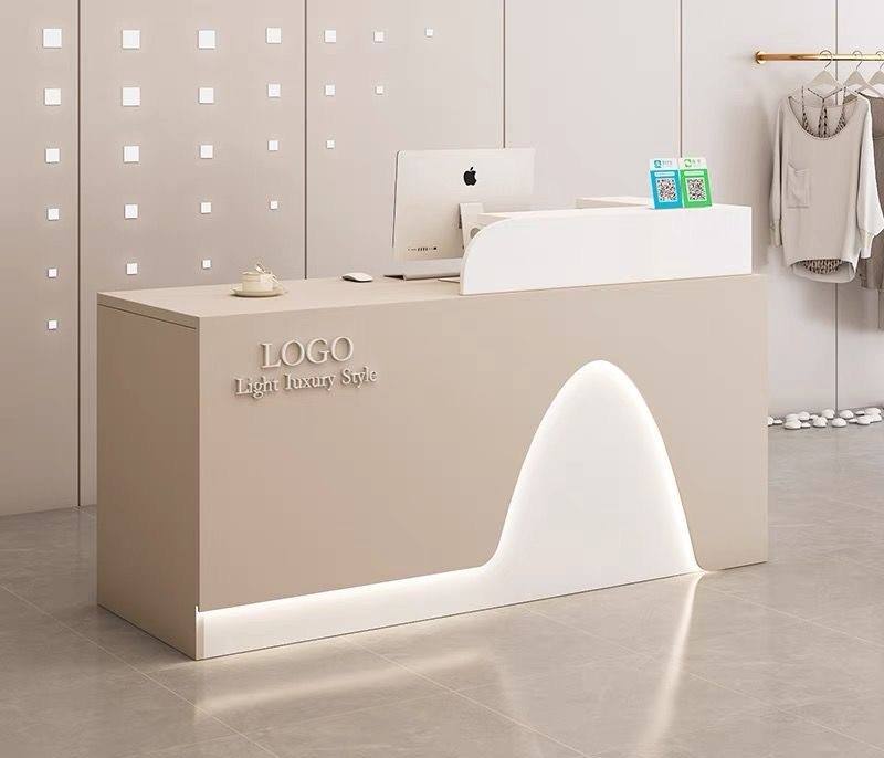 โต๊ะแคชเชียร์ขนาดเล็กสไตล์มินิมอลทันสมัย เหมาะสำหรับร้านเสื้อผ้า ซูเปอร์มาร์เก็ต ร้านเสริมสวย บริษัท หรือเคาน์เตอร์ต้อนรับ