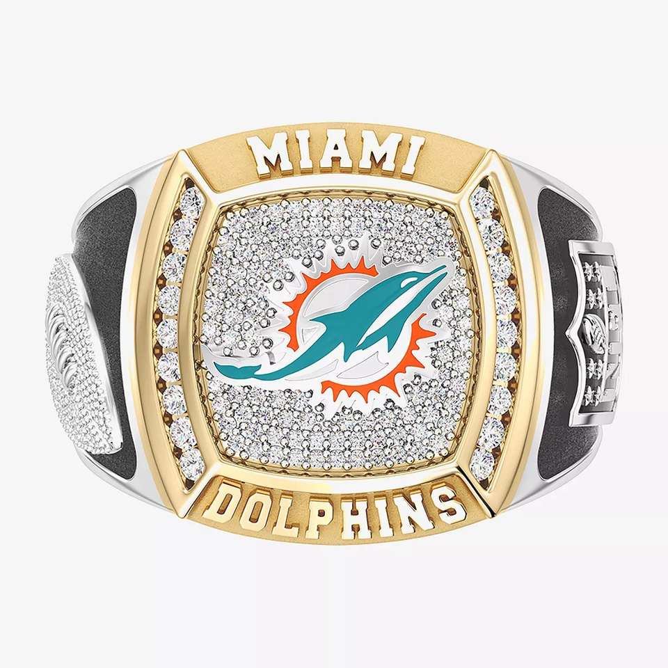 แหวนแชมป์ไมอามี ดอลฟินส์ 1/2CT แบบปรับแต่งได้เต็มที่ แฟชั่นผู้ชาย 2 สี แหวนสั่งทำพิเศษสำหรับนักเรียนมัธยมปลาย/มหาวิทยาลัย ประดับด้วยโมอิสซาไนต์ โลหะผสม