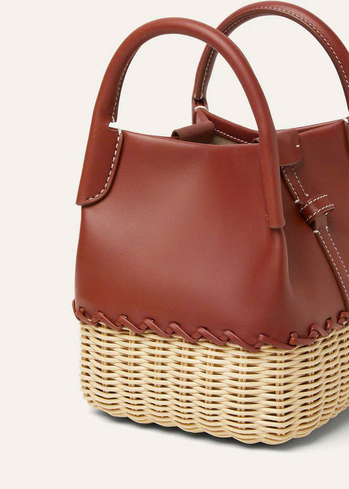 กระเป๋าหวายขนาดเล็กกระเป๋าหวายพร้อมสายยาวกระเป๋าหวายพร้อมหนังกระเป๋าสุดหรูแบบถักด้วยมือสำหรับขายส่ง Nhat Minh
