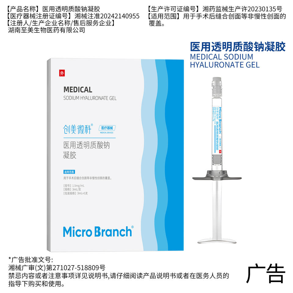 Micro Branch Medical Sodium Hyaluronate Gel 3ml5pcs For Wound Coverage Class II Device