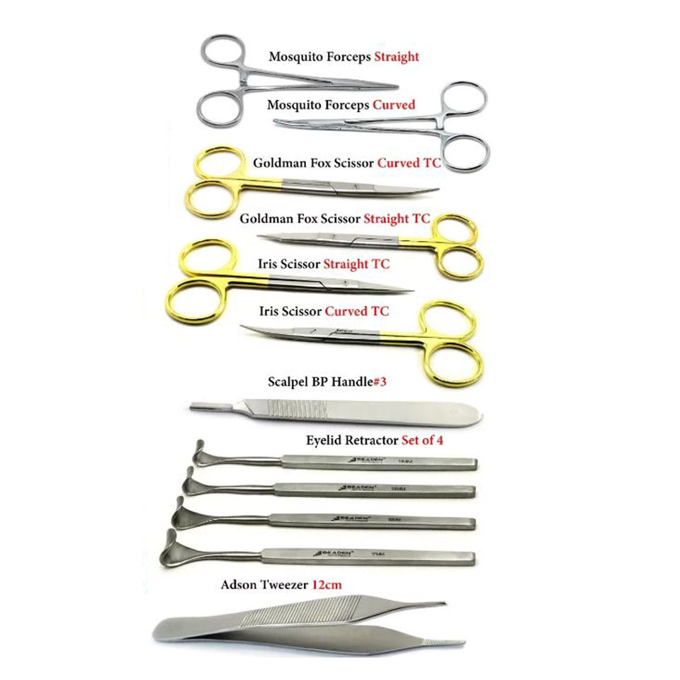 ชุดผ่าตัดตาขนาดเล็กพร้อมเครื่องมือทางตาแบบแมนนวลเครื่องดึงหนังตาที่ทำจากสเตนเลสสตีล