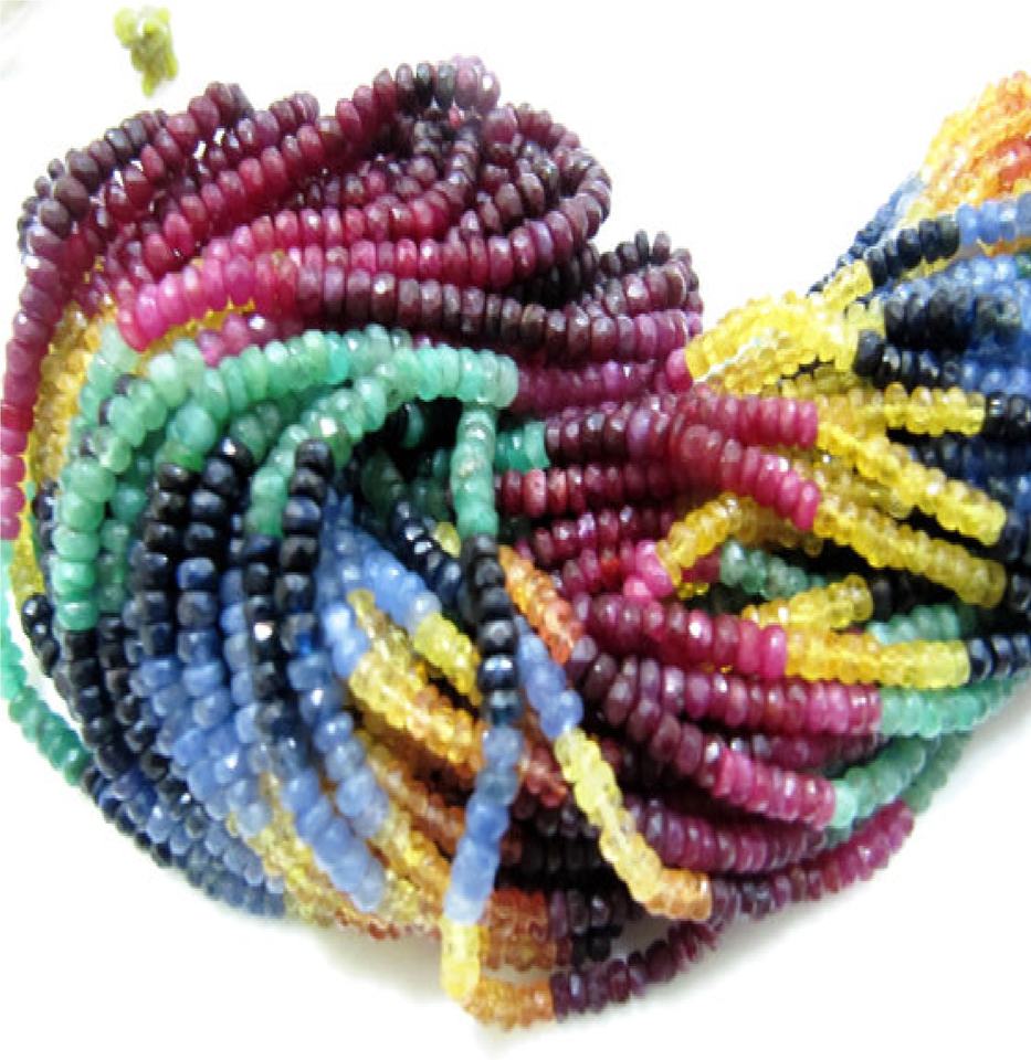 ลูกปัดไพลินหลากสีหลายเหลี่ยมเพชรพลอยประดับลูกปัดทับทิมมรกตลูกปัดหลากสี