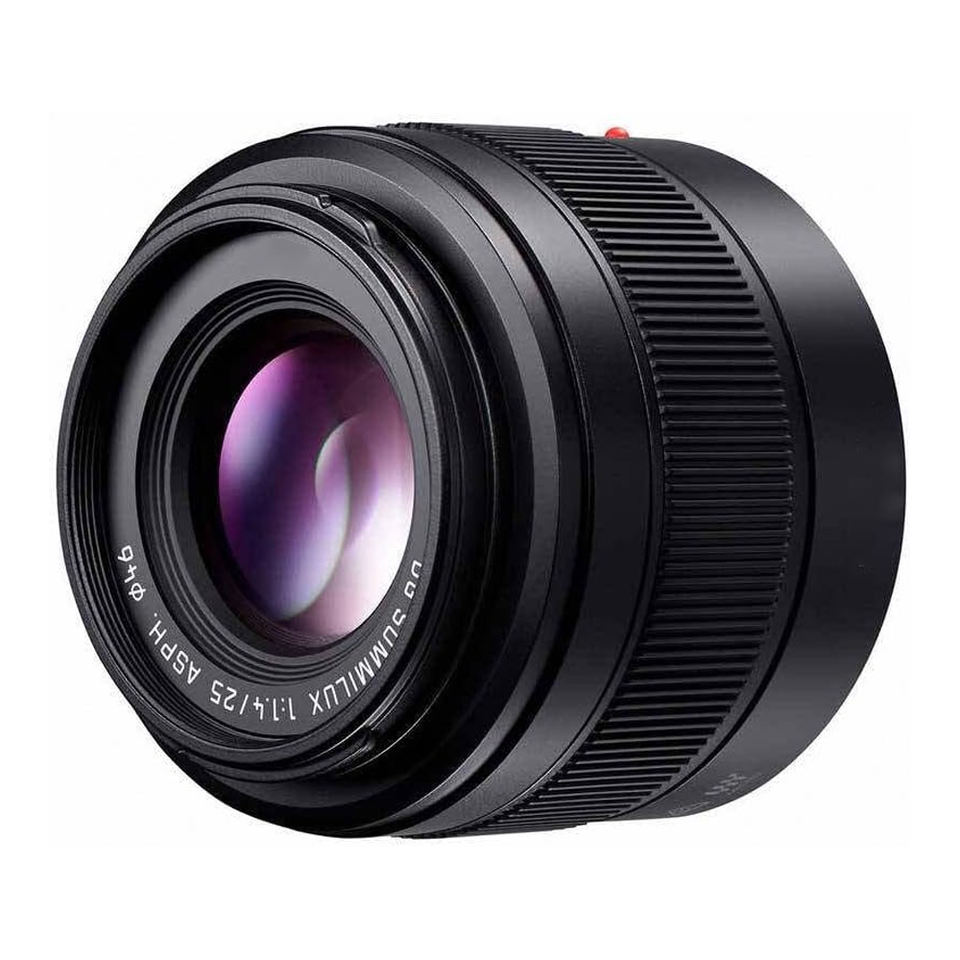 เลนส์ไมโครโฟร์เธิร์ดส์ ฟิกซ์โฟกัส 25 มม. F/1.4 ASPH ผลิตในญี่ปุ่น เทียบเท่าฟูลเฟรม 25 มม.