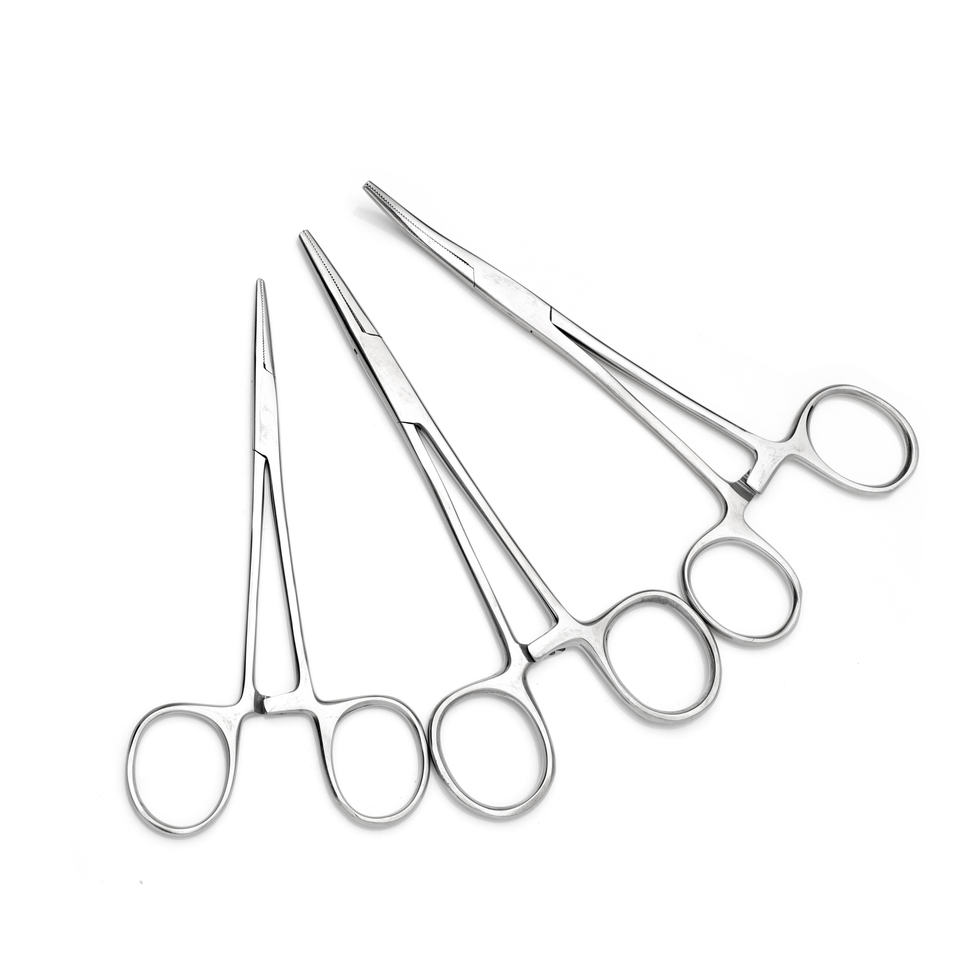 ชุดคีมหนีบสเตนเลสแบบโค้งตรงอุปกรณ์ผ่าตัดพื้นฐานแบบแมนนวล