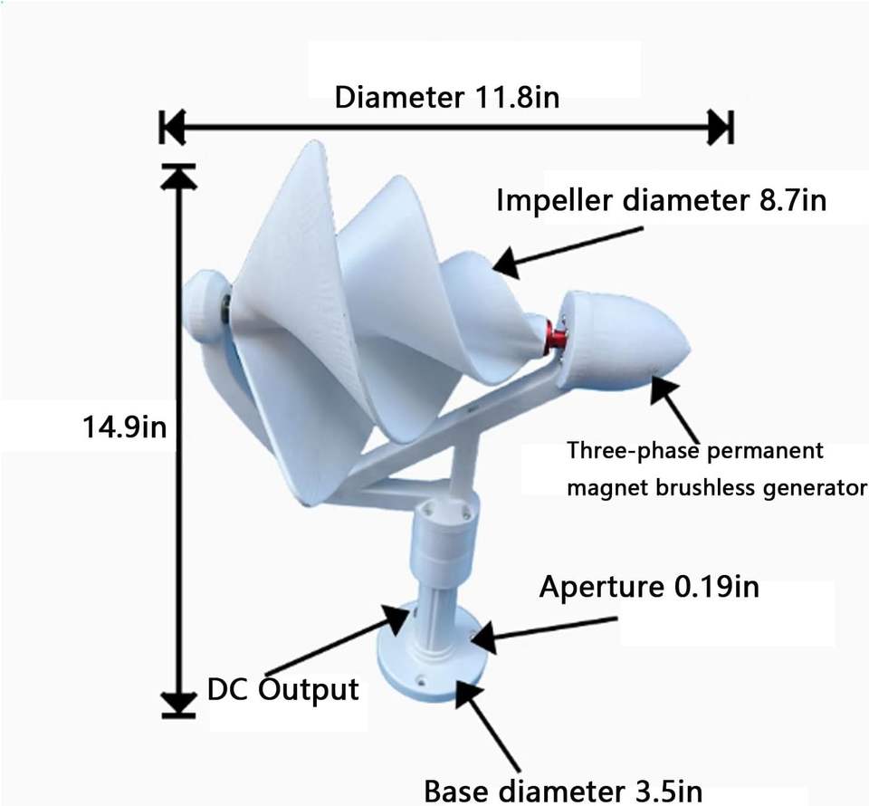 กังหันลมไมโครสไปรัล 50 วัตต์ แบบสามเฟส แม่เหล็กถาวร ไร้แปรงถ่าน กระแสตรง กำลังขับเคลื่อนแนวตั้ง VAWT