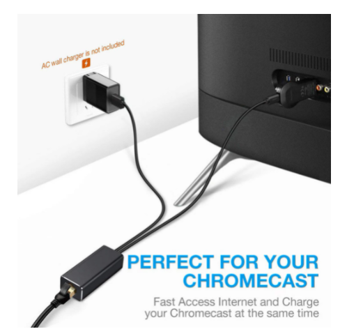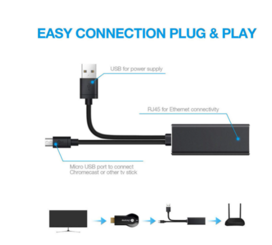 อะแดปเตอร์ไมโครยูเอสบีเป็นอีเธอร์เน็ต RJ45 พร้อมสายไฟยูเอสบีสำหรับอเมซอน ไฟร์ทีวี กูเกิลโฮมสำหรับมินิ อัลตร้า โครมแคสต์ 1/2