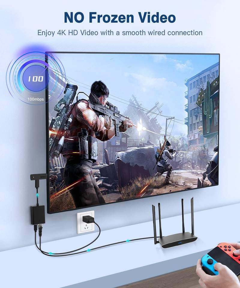 ไมโคร USB เป็น RJ45อะแดปเตอร์เครือข่ายอีเธอร์เน็ตเข้ากันได้กับ4K ไฟติด